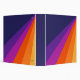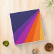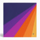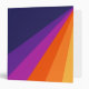 Abstract illustration of diagonal retro style stripes in purple, blue, orange and yellow colours on dark blue background