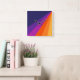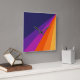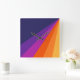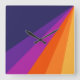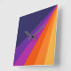 Abstract illustration of diagonal retro style stripes in purple, blue, orange and yellow colours on dark blue background