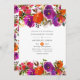 Purple and orange watercolor roses and peonies wedding invitation customizable to your specifics.