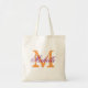 Purple and orange wedding tote bag with personalized monogram. Vintage chic style monogrammed design. Customize for brides entourage; bridesmaids, flower girls, maid of honour, mother of the bride, mother of the groom, team bride, guests etc. Elegant script typography for name. Rustic name initial. Also nice for girls weekend bachelorette or party favours at marriage, bridal shower, engagement or anniversary.