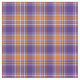 Fabric with a Plaidwerx original sporty plaid pattern in purple, orange, and white. Pattern repeats every 1+3/8". Special order larger scale via https://plaidwerx.com/contact.htm
