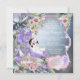 Belle chaussure en satin violet et rose avec petite fille mignonne et coussin avec belle couronne de princesse et chandelle royale sur un élégant arrière - plan parsemé de jolis roses roses et lavande. Vous pouvez facilement customiser cette invitation de baby shower princesse mignonne pour votre événement en ajoutant simplement vos détails dans le style de police, la couleur et le libellé de votre choix.