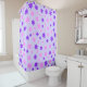 A star-struck shower curtain with my design of scattered big and small pink and purple star shapes.