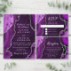 Celebrate every detail of your wedding with this purple and silver agate marble details card. Rich amethyst hues, organic stone textures, and shimmering silver accents combine to create a sophisticated, jewel-toned design that complements a modern, elegant, or glamorous celebration. The striking contrast of deep purple and metallic silver provides a polished backdrop for sharing both reception and lodging information, keeping your guests informed in style. Fully customizable with your event schedule, hotel details, and special notes, this agate-inspired card adds a cohesive and refined touch to your wedding stationery suite, perfect for fall or winter weddings.