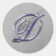 Purple and Silver Glitter Fancy Script Monogram D Classic Round Sticker
