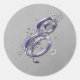 Purple and Silver Glitter Fancy Script Monogram E Classic Round Sticker