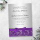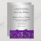 Formal purple lace and silver wedding invitations. Easily personalize for your wedding day. Designs are flat printed illustrations/graphics - NOT ACTUAL SILVER, BOW OR LACE.