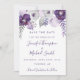 This invitation has light and dark purple watercolor flowers, leaves and silver floral elements. The copy is fully editable. You can also change the font. This card has matching invitations, envelopes, labels and stamps. Make all your wedding items coordinate!