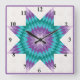 Purple and Teal Lone Star Quilt Design Square Wall Clock