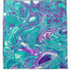 Turquoise, purple and teal pour painting cells marble like swirls abstract art shower curtain.