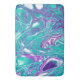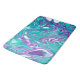 Turquoise, purple and teal pour painting cells marble like swirls abstract art bath mat.