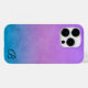 Features a mottled design with purple, pink and turquoise colours. Personalize with an initial.