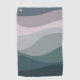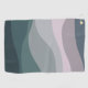 Retro style waves geometrical pattern illustration with purple, grey, green, pastel purple, turquoise, blue and dark blue stripes decoration.