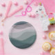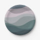 Retro style waves geometrical pattern illustration with purple, grey, green, pastel purple, turquoise, blue and dark blue stripes decoration.