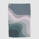 Retro style waves geometrical pattern illustration with purple, grey, green, pastel purple, turquoise, blue and dark blue stripes decoration for everybody who likes groovy retro style design and colour palette.