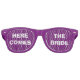Fun bride's purple party glasses with the lens done in purple, with white custom text reading, HERE COMES THE BRIDE. Great for the bachelorette party.