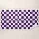 Stylish custom beach towel features a regal purple and white chequered pattern made of rows of alternating white and dark purple squares.