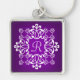 Purple and White Damask Monogrammed Key Chain