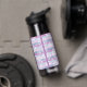 Purple And White Floral Camelbak Water bottleStore your water or favorite beverage in this charcoal tinted camelbak purple and white floral water bottle. Size: Water Bottle (25 oz)Stay hydrated, and make Mother Nature happy too, with a sustainable water bottle from Zazzle! The Eddy® + everyday water bottle is now made with Tritan™ Renew, a highly durable and lightweight plastic made using efficient Polyester Renewal Technology that produces new material with less demand on finite resources. That’s great news for the environment, but there’s also some great news for you: this bottle is leak-proof when closed and spill-proof when open, so you can carry it in your gym bag, purse, backpack, or briefcase without any stress. It’s odor and stain resistant. Flip, bite, and sip your way to sustainable daily hydration with The Eddy and Zazzle!Height & Width: 11" x 4.5"BPA-Free Eastman Tritan Renew 50% Recycled Material (plastic)Straw includedUniversal Eddy + straw cap and bite-valve interface delivers a high flow and is compatible with Chute® Mag and Carry Cap vesselsCupholder compatibleSingle wallTritan Renew made with 50% recycled materialFlip, Bite, Sip™Leak-proofFor additional care and use instructions visit camelbak.com/cleanEasy To Carry: Comfortable HandleDrink through strawSpill-proof when openSince 1989, CamelBak® has been creating durable and reusable products, reducing the amount of unnecessary single-use • plastics in our environment. Know that you are a part of the solution when using this product everyday.REPURPOSE™ Gold (visit camelbak.com/repurpose for more information)Warning: Hand wash only. Not for use with hot liquids. Not for use by children under 5 years. Choking hazard, small parts. Do not microwave. Do not freeze. Use caution with carbonated beverages: can spurt when opened