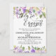 Beautiful ultraviolet roses mix with creamy white flowers to create a beautiful floral design. They're engaged is written in a large flowing script. The remainder of the text is a classic serif font. The back of the invitation is as pretty as the front. It is a rich royal purple with the tiny white dots. The floral design from the front is continued on the back. The text is easy to customize.