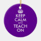 Purple and White Keep Calm and Teach On Ceramic Ornament