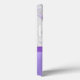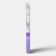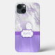 Chic iPhone case done in a white and purple marbled look, across the top and a purple foil look, across the bottom of the case. Graphics of a lavender ribbon, runs between the two backgrounds and a white with purple glittery framed text area, has purple text ready to personalize, to suit your needs.