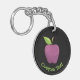 Purple apple with leaf icon. Custom background colour. Custom text on both sides.