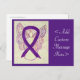 The guardian angel postcard art print features the picture of a purple awareness ribbon angel painting. Add your own optional words or message to the postcard for personalized angel art cards! You can also remove the text for an art only angel postcard print. The purple awareness angel ribbon painting postcards can be customized with personalized messages to make great awareness cause images or pictures for fundraisers, awareness gifts, or other special events. Give this angel art as an awareness ribbon gift for any occasion.