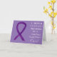 The greeting or note card features the picture of a purple awareness ribbon painting. The card states "I Hope & Support Awareness for a <Add Your Cause Here> Cure!" Add your own optional words or message to the greeting card for personalized angel art cause awareness notecards! You can also remove the text for an art only note cards. A purple awareness ribbon colour means support for Pancreatic Cancer, Crohn's Disease and Colitis, Alzheimer's Disease, Anti-Gay Bullying (Spirit Day), Cancer Survivor (All Kinds), Domestic Violence, Lupus, Sjögren's Syndrome, Chronic Pain, Leiomyosarcoma, Arnold-Chiari Malformation, Migraines, Cystic Fibrosis, Retinitis Pigmentosa, and Fibromyalgia. Let this purple awareness ribbon support these causes! The purple awareness ribbon painting art greeting cards can be customized with personalized messages to make great awareness cause art cards for fundraisers, awareness gifts, or other special events. Give this art card as an awareness ribbon gift for any occasion.
