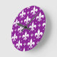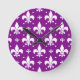 Purple Background Fleur-de-lis Pattern Design Round Clock