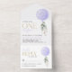 Purple Balloon, Greenery, Foliage, First Birthday All In One Invitation