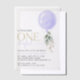 Purple Balloon, Greenery, Foliage, First Birthday Vellum Invitations