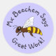 A stripey cartoon honeybee on a purple background. The text reads "Mx Beechem Says Great Work!" and can be changed for a custom name/message. Ideal for teachers as rewards for students.