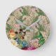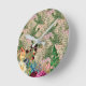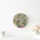 Purple Berries and Roses on Newsprint Ephemera Round Clock