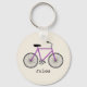 A keychain featuring an illustration of a purple bicycle. Personalize with your name under bike.