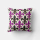 Purple Black Baroque Fleur-de-lis Pattern Design Throw Pillow