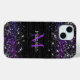 Purple black brushed metal glitter monogram Case-Mate iPhone case