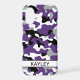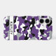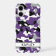 Customize this purple black gray and white camouflage iPhone 17 case with your name in a trendy modern CAP font in black on white. It's so modern, girly and trendy! Perfect for any country girl!