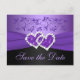 Purple Black Floral Hearts Save the Date Post Card