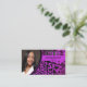 A purple and black numbers background on this design features a photo placeholder on the left with template name on the right. The back includes a coordinated design and colours with text fields for the business name and details. Replace the placeholder photo with your vertical format photograph. Fill in the template fields or edit using the design tool to select a font style, size, and colour you like. The placeholder photo is courtesy pixabay.com.