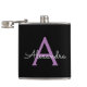 Purple and Black Monogram Add Your Own Name Party Flask. This makes the perfect sweet 16 birthday, wedding, bridal shower, anniversary, baby shower or bachelorette party gift for someone that loves glam luxury and chic styles.