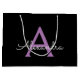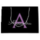 Purple Black Script Girly Monogram Name Large Gift Bag