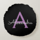 Purple Black Script Girly Monogram Name Round Pillow