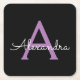 Purple Black Script Girly Monogram Name Square Paper Coaster