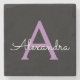 Black and Purple Simple Script Monogram Name Stone Tile. This makes the perfect graduation, sweet 16 birthday, wedding, bridal shower, anniversary, baby shower or bachelorette party gift for someone that loves glam luxury and chic styles.