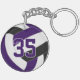 This sporty volleyball themed keychain for boys or girls features a realistic looking purple, black and white volleyball upon which you can customize the player's name, jersey number and court position, plus school or club name and mascot name in a varsity letter style font - by katz_d_zynes