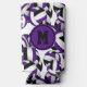Purple black volleyballs pattern w player monogram seltzer can cooler