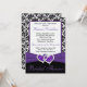 This modern chic black and white damask bridal shower invitation has a purple PRINTED ribbon with a pair of FAUX (PRINTED) glitter joined diamond hearts brooch on it. All text and the type of paper is customizable. ***PLEASE NOTE that there are no raised elements on this design. Everything is printed flat. It is shown here on basic paper, but would look especially nice on the lustrous metallic "ice" paper, which has a subtle metallic sparkle to it. I would NOT use any of the coloured papers (metallic champagne, gold, silver, speckled) as they ALL will discolour the invitation. The linen paper will add a texture of thin lines that you may not want. The basic or recycled papers are a cheaper alternative if you are on a tighter budget. ***PLEASE NOTE that if you change the font or size of the font, it may alter how your invitation prints. It will print the way you see it on your monitor, so if you have alignment issues, or sizing problems, please contact me for help. I will not see your invitation once you order it, and Zazzle will NOT edit anything (typos, alignment, etc.). If you require assistance or would like any other matching items, please email your request to niteowlstudio@gmail.com.