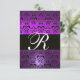 PURPLE BLACK WHITE DAMASK MONOGRAM RSVP INVITATION