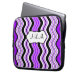 This groovy monogrammed purple, black, and white wavy stripes laptop sleeve has a text box for you to customize with your own name, initials, business name, or other text. If you need any help customizing, please email niteowlstudio@gmail.com.